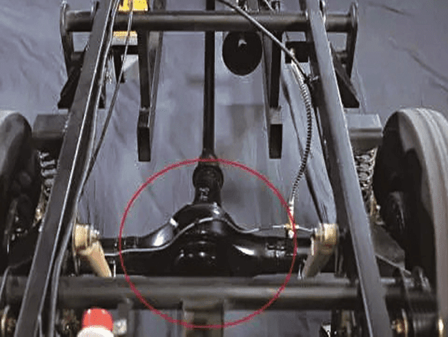 中軸技術(shù)源起何方?萬虎工業(yè)為何執(zhí)著開發(fā)中軸技術(shù)呢?目前市面上的三輪摩托車基本以偏軸三輪車為主,輸出傳動(dòng)軸位置偏向左側(cè),輸出配重難以做到均衡,這對(duì)整車行駛過程中的平穩(wěn)性和舒適性提出很高的要求,甚至?xí)绊懙睫D(zhuǎn)彎時(shí)的安全性。其實(shí)軸傳動(dòng)輸出的問題早已在汽車行業(yè)解決,那就是發(fā)動(dòng)機(jī)動(dòng)力輸出,后橋1:1配置,于是萬虎工業(yè)率先提出在三輪摩托車使用中軸的概念,并利用自身的研發(fā)優(yōu)勢(shì)付之為現(xiàn)實(shí)。如圖所示: